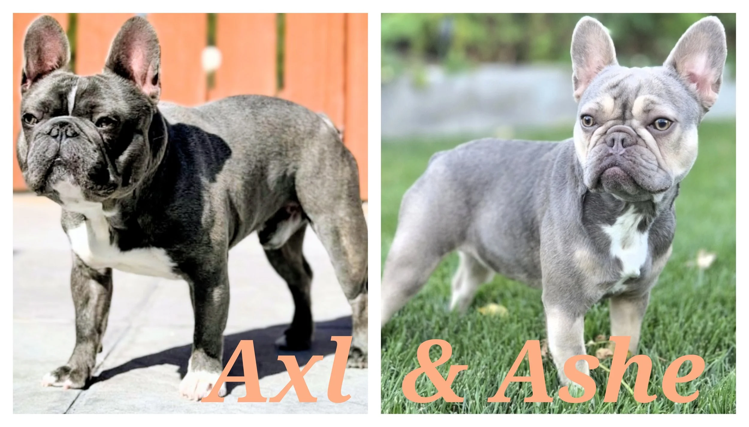 We are hoping for a beautiful litter Early Summer 2026 from new momma Ashe (lilac sable fawn dam) and Axl (blue brindle sire) from California Dream Frenchies. These 2 adults have been OFA and genetic health tested. Ashe is a tiny stout 19lbs with a great structure and Axl is 23lbs with a very nice stout build and many in his line. We expect a large variety of colors from these two, including potential for blue, blue brindle, blue fawn, fawn, red fawn, blue pied, fawn pied, lilac, lilac fawn, lilac pied, and more…